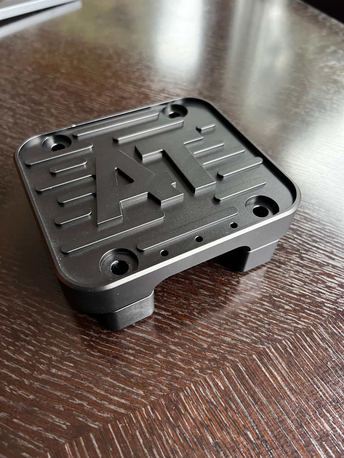 Black hard coat anodized 6061 aluminum.
